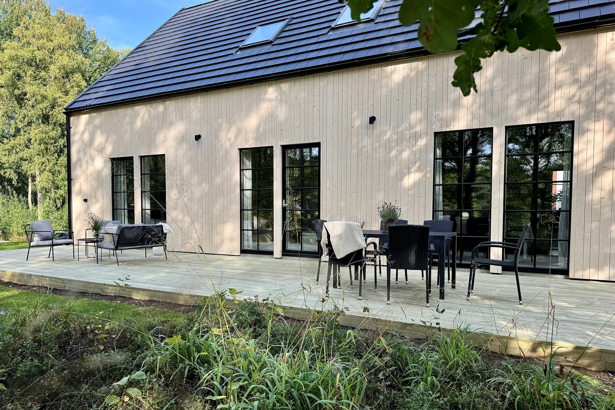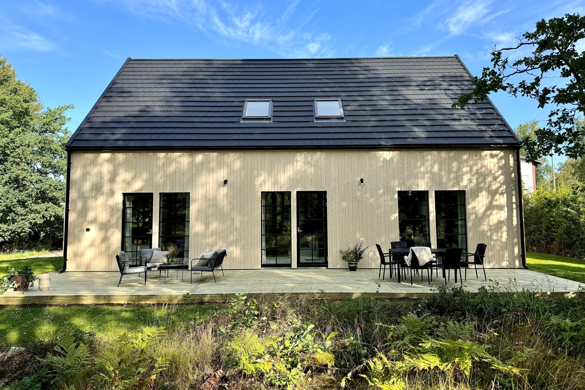 Villan är helt nybyggd och färdigställdes så sent som 2024. En grönskande tuja-häck har precis planterats för att skärma av din egen oas från grannarna, utöver det finns också nybyggd trall på baksidan med sol hela dagen. Hela bostaden präglas av en exklusiv och genomtänkt känsla, från betongpannor av modell "carisma" till helkaklade badrum, ljusa golv och detaljer såsom automatiserad belysning via plejd. Hög komfort i form av golvvärme i hela plattan (hela bottenvåningen).