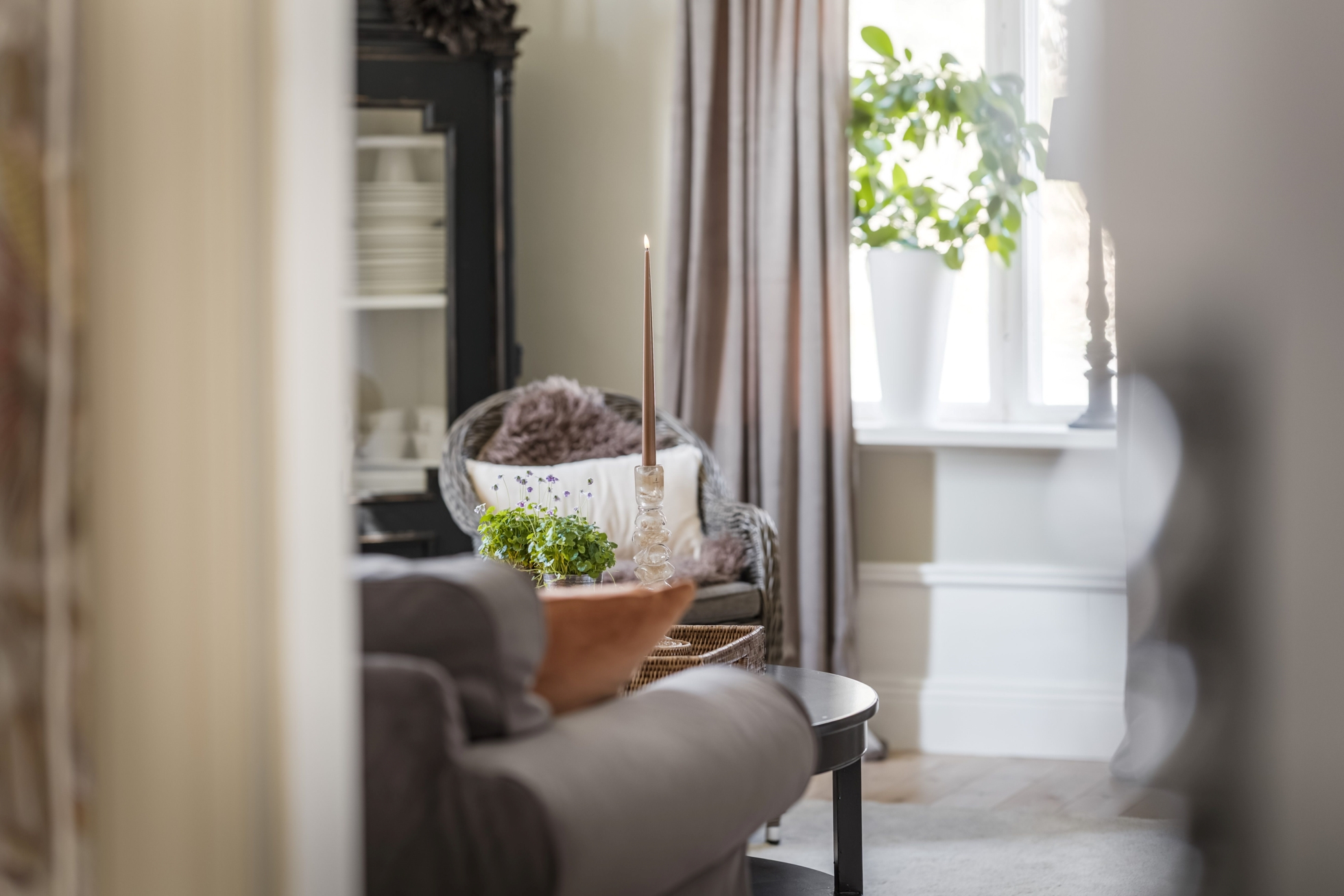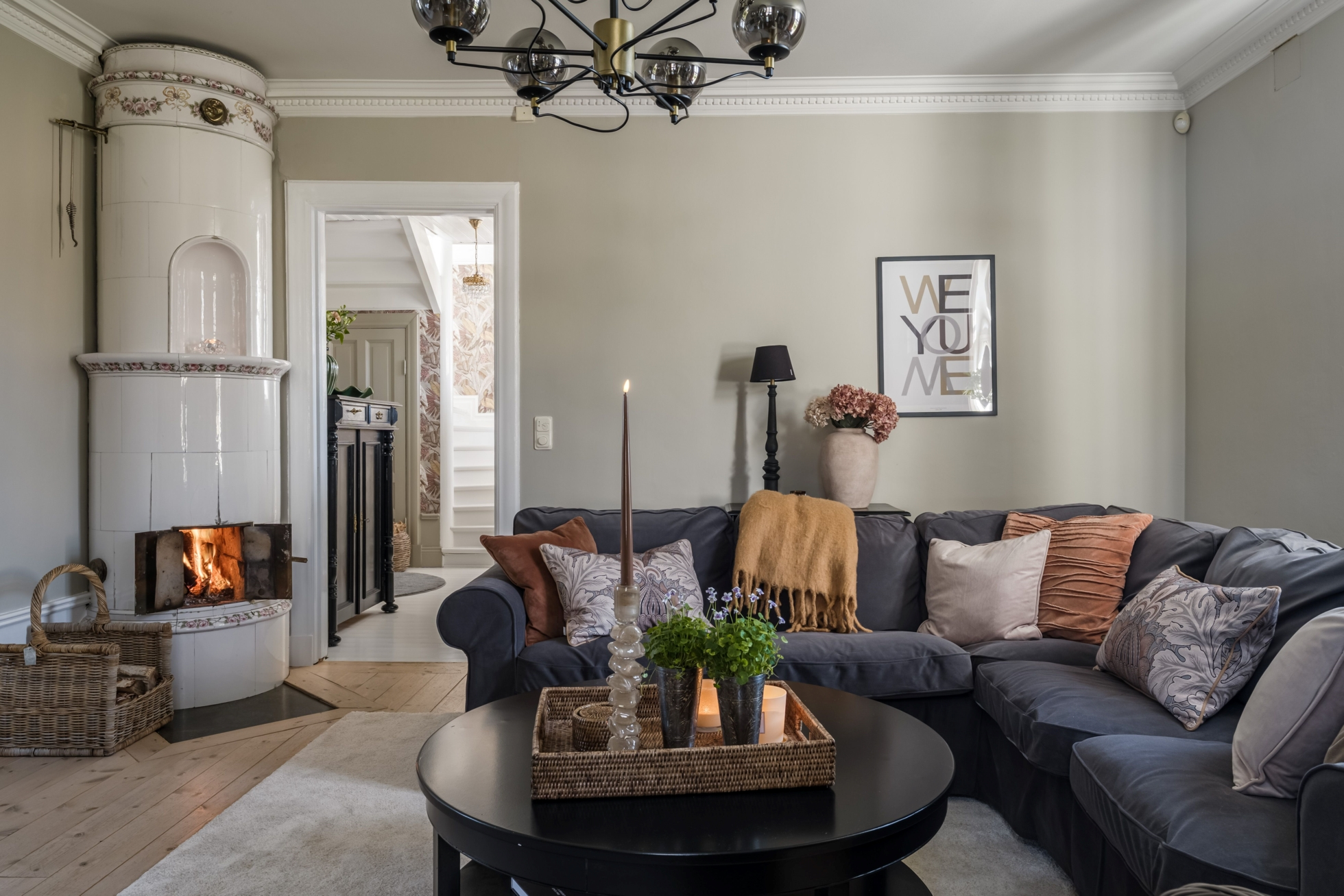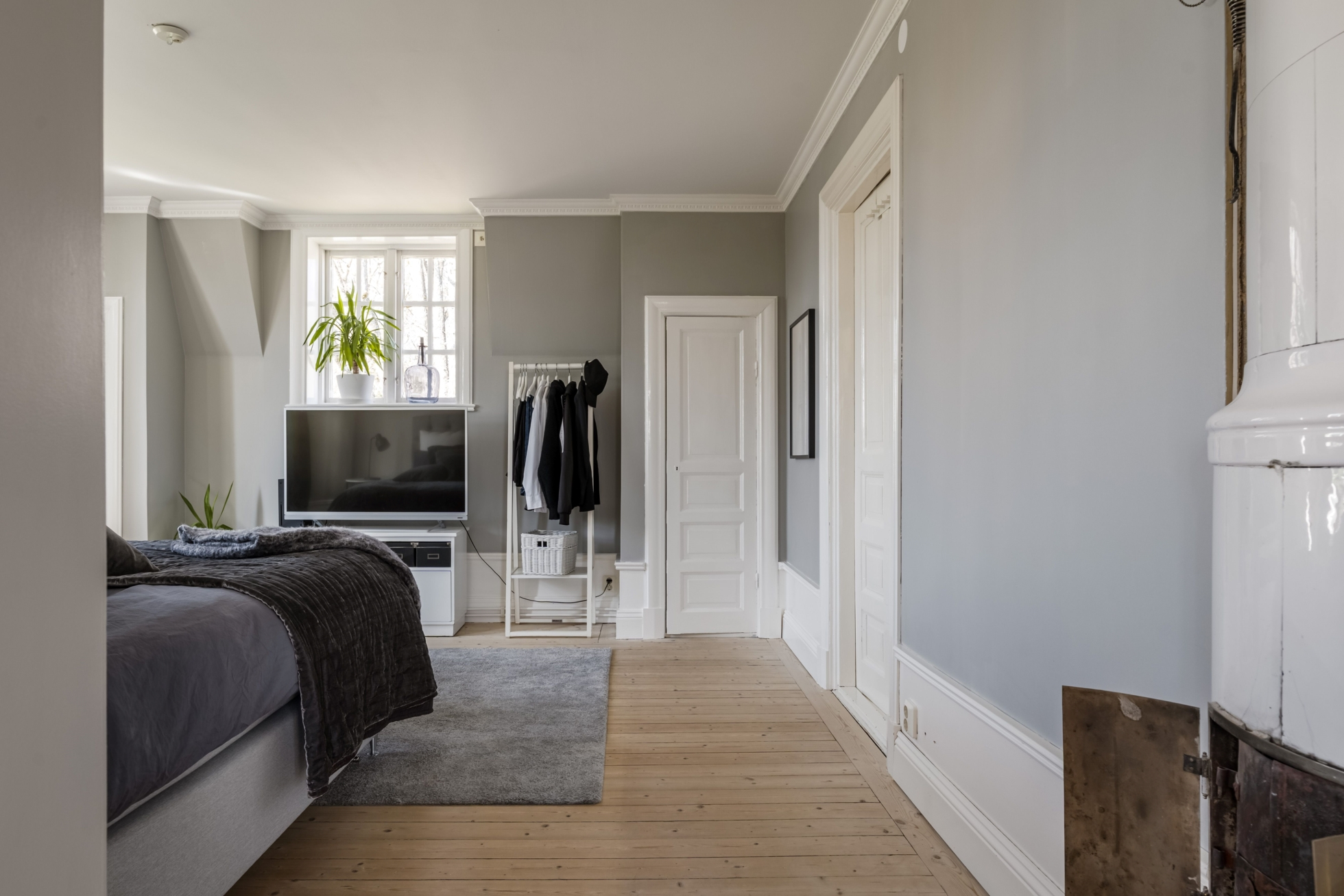 Entréplanet erbjuder ljusa och luftiga sällskapsytor med rymliga rum. På hela nedervåningen ligger nylagda massiva trägolv som ger en varm och gedigen känsla. Här möts du av en mysig hall där det idag finns en praktisk garderob, utrymmet har tidigare varit en gästtoalett och är fortfarande förberett med avlopp och vatten för den som önskar återställa WC. Från hallen nås ett generöst kök med plats för matgrupp. Vardagsrum med fönster i två väderstreck som ger ett härligt ljusinsläpp. Intill finns en matsal som även kan nyttjas som extra sovrum. De vackra kakelugnarna i båda rummen samt stuckaturer i taket bidrar till bostadens charm.