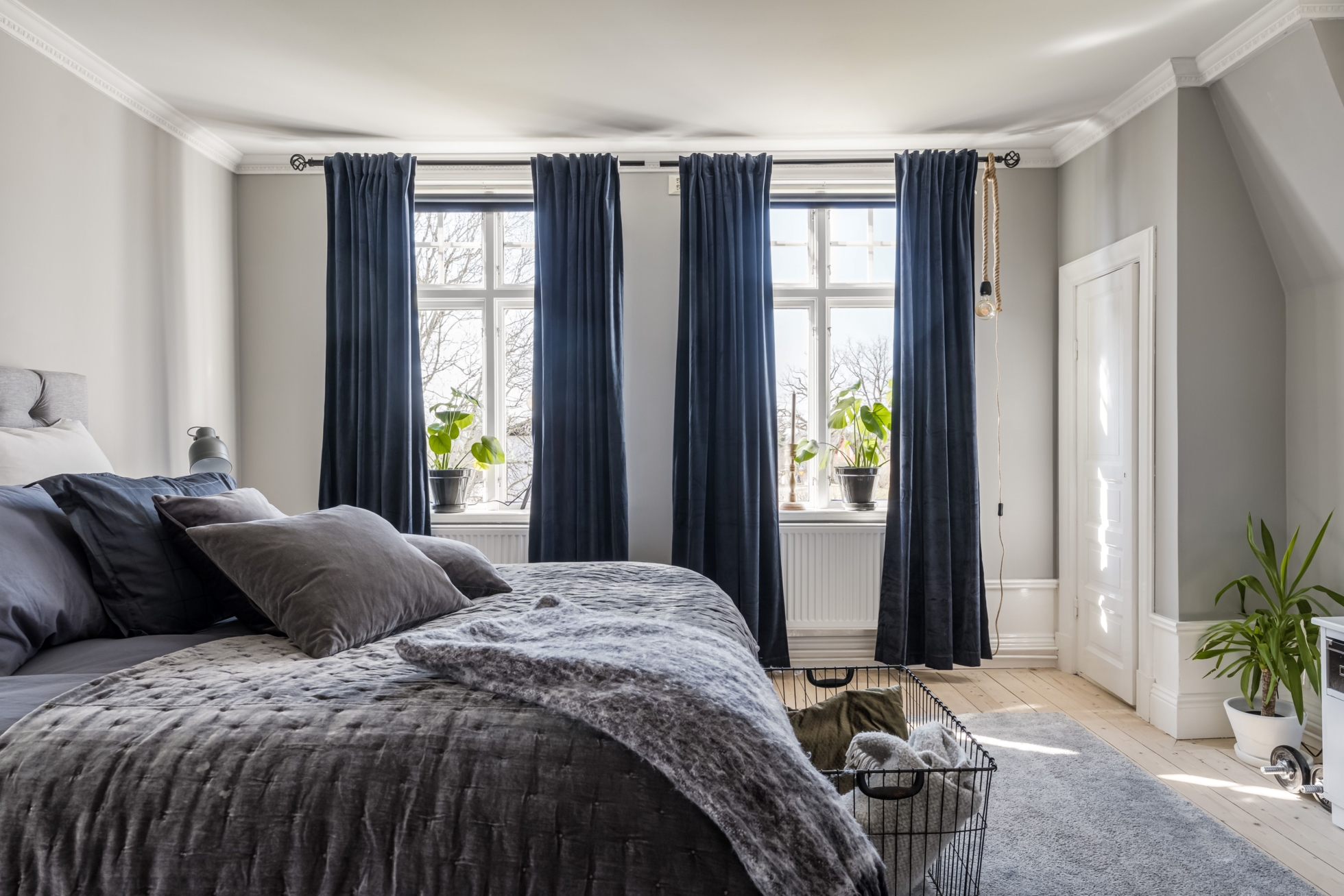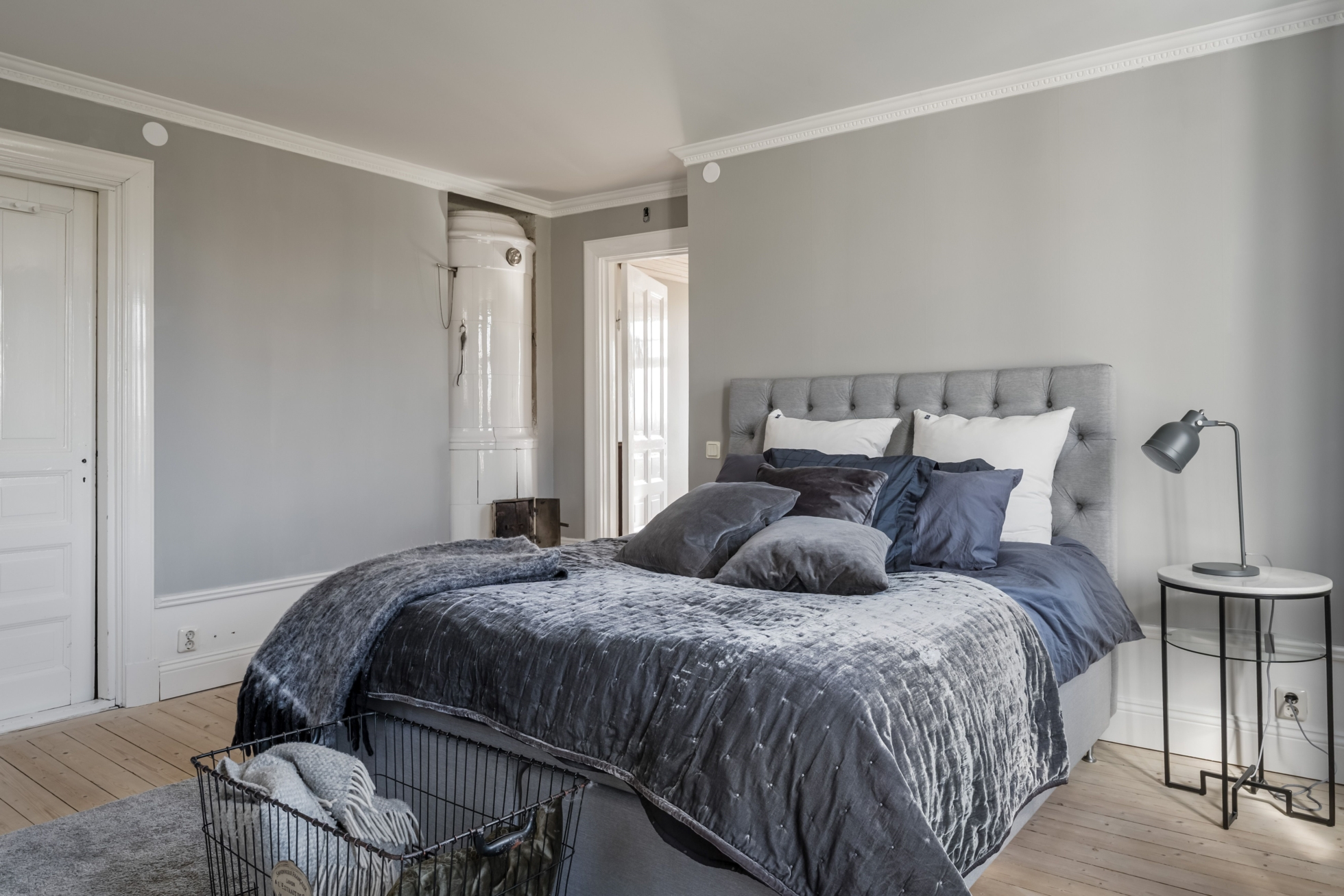På ovanvåningen finns två rymliga sovrum med goda förvaringsmöjligheter, varav ena även har en kakelugn. Finns möjlighet att göra om till extra sovrum vid behov. Här finns också ett stort badrum med golvvärme och tvättmaskin. I källaren finns en mindre matkällare, som idag används för förvaring.