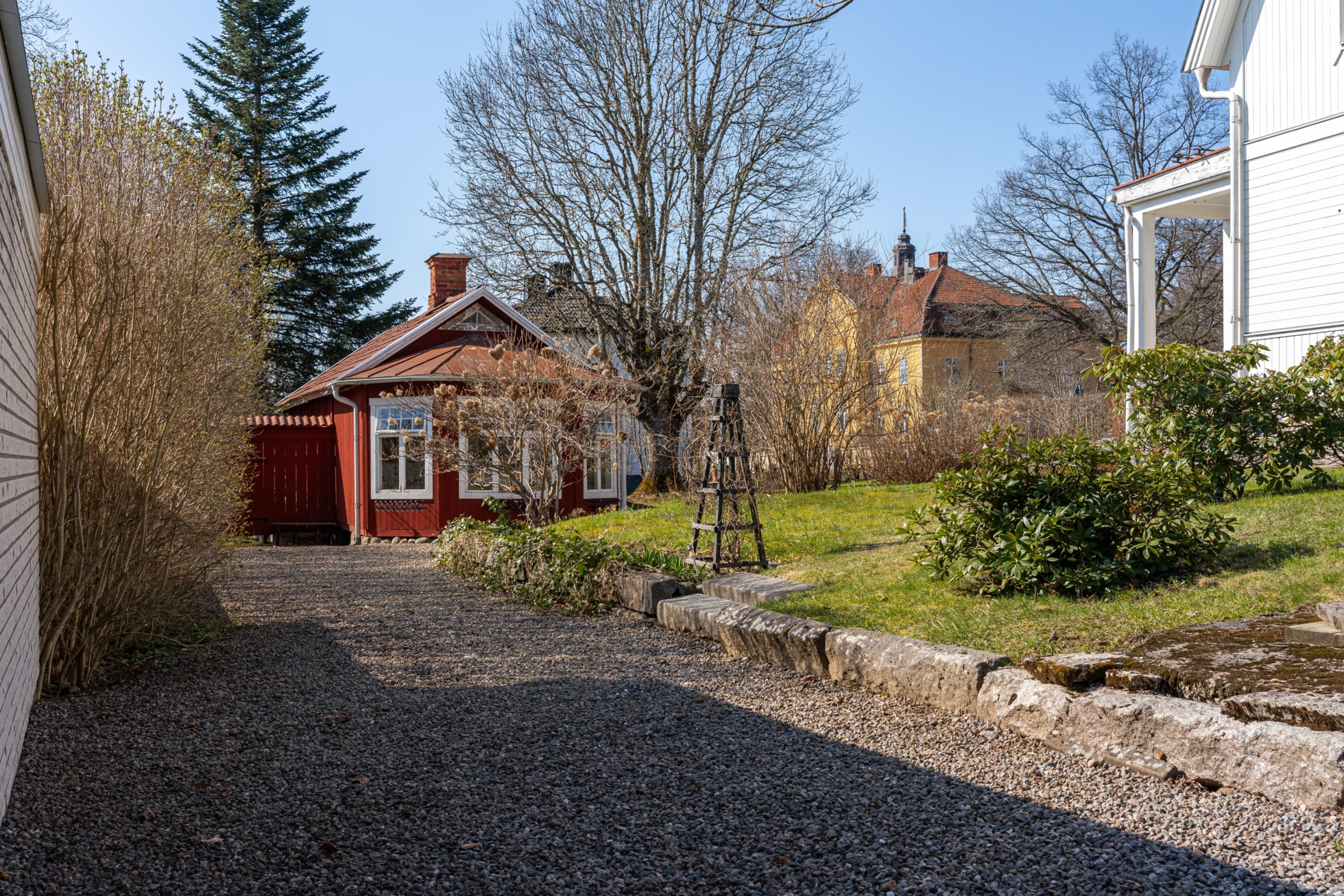 Den lättskötta trädgårdstomten om 1 641 kvm erbjuder generösa ytor för odling, lek och avkoppling. Här finns även ett trivsamt och välhållet renoverat uthus, perfekt som ateljé, hobbyrum eller en social plats för fikastunder och middagar med vänner. I anslutning finns praktiska förråd samt vedförvaring. Bostaden värms upp via fjärrvärme och är ansluten till kommunalt vatten och avlopp. Fiber är indraget.