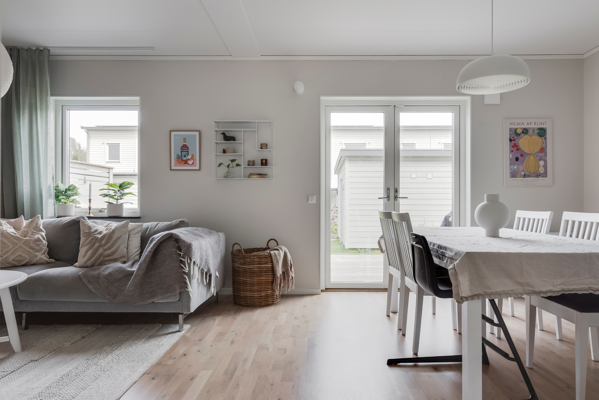 Detta nybyggda radhus om 117 kvadratmeter erbjuder ett hem där allt är genomtänkt för att vardagen ska fungera smidigt. Ljusa ytskikt och välplanerade rum ger en känsla av rymd och harmoni, samtidigt som husets fem rum och kök gör det enkelt att anpassa boendet efter familjens behov. Här möter modern arkitektur en funktionell planlösning som inbjuder till både vardagsliv och umgänge.