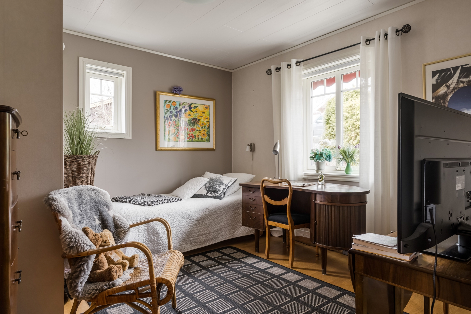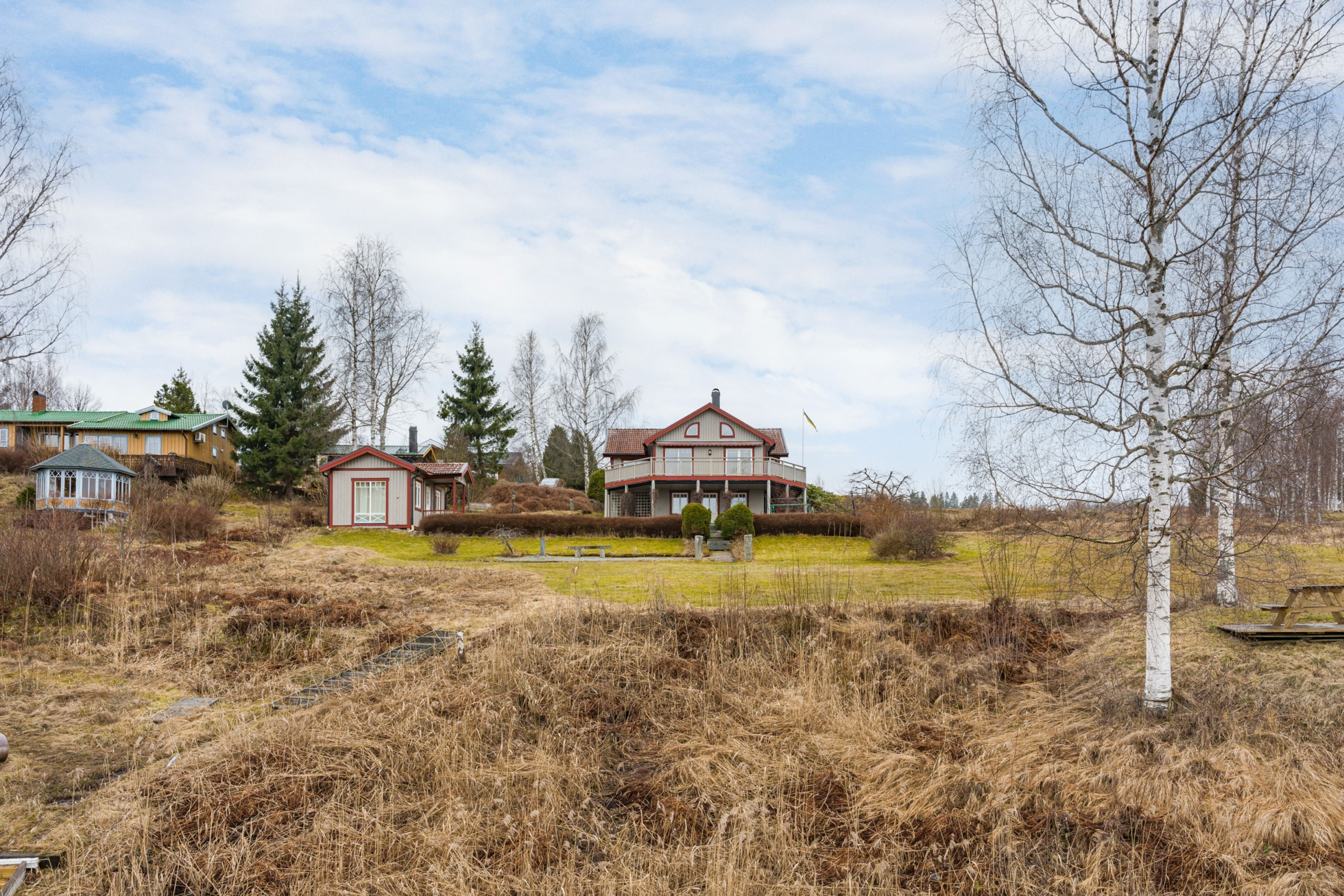 Med ett högt läge och fri vy över Råsvalen ligger detta välbyggda sutteränghus uppfört 2004 av nuvarande ägare. Här bor du med naturen som närmaste granne och med sjön bara cirka 40 meter från huset, vilket skapar en direkt närvaro av vatten och ett lugn som är svårt att hitta på annat håll. Kombinationen av genomtänkt byggnation och det unika läget gör detta till ett hem som verkligen sticker ut.